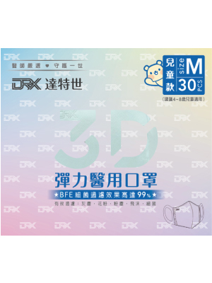 達特世- 兒童立體口罩 兒童款M-藍(30入)