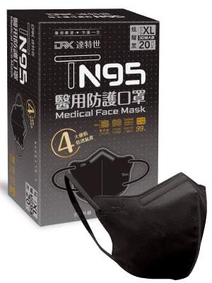 TN95 3D醫用高防護口罩XL-炫耀黑 (20入)
