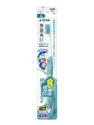1.山形植毛,淨護牙齦溝:貼合齒齦且深入清潔因牙周問題而變寬的牙齦溝,潔淨效果1.5倍。搭配日本技術開發超級細毛,細微深入齒縫、牙齦溝,舒齦不刺激。